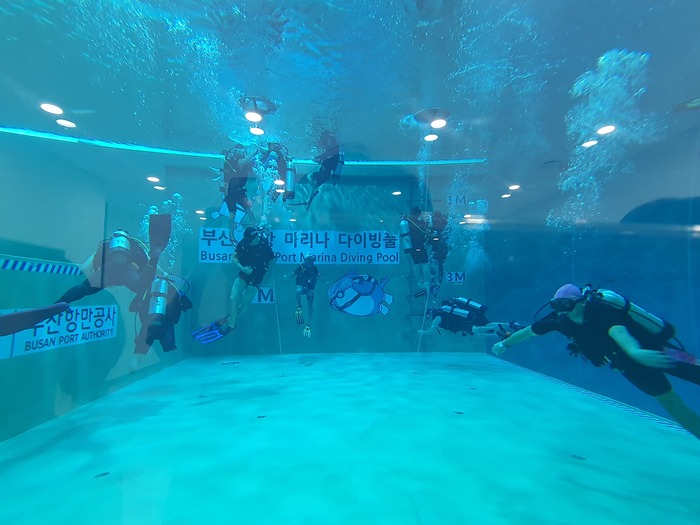 부산항만공사(BPA)와 한국해양소년단 부산연맹이 20일 북항 마리나 다이빙 풀에서 척수장애인을 위한 스쿠버다이빙 체험 행사를 열었다.