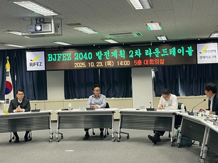 부산진해경제자유구역청이 23일 'BJFEZ 2040 발전계획 2차 라운드테이블'을 개최했다. 이번 회의는 공간 개발과 정주환경 개선을 통한 균형 성장 전략을 모색하기 위해 마련됐다.