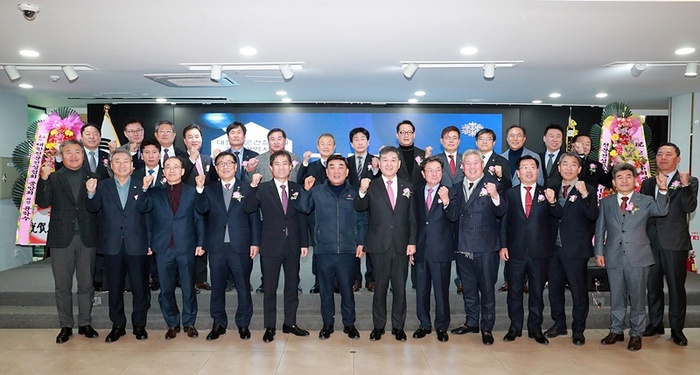 지난 2월 울산시티컨벤션에서 열린 대한전문건설협회 울산시회 ‘제28회 정기총회’에서 김두겸 울산시장 등 관계자들이 기념촬영 하고 있다. 이날 창명건설(주) 한영철 대표는대한전문건설협회 중앙회 회장 감사패를 수상했다.