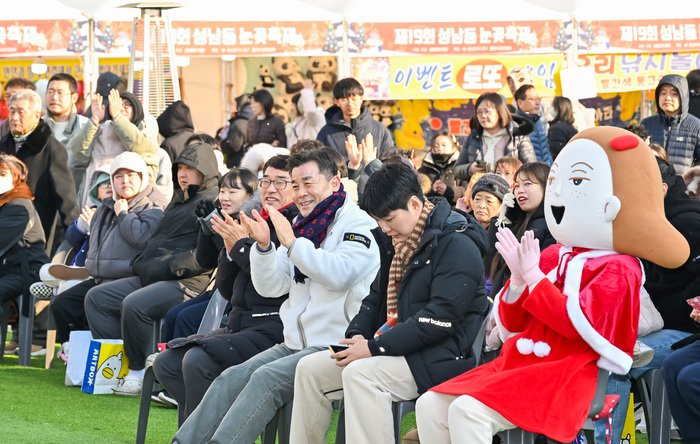 제19회 성남동 눈꽃축제가 계속되고 있는 27일 김영길 중구청장이 축제현장에서 진행되고 있는 크리스마스 합창대회를 즐기고 있다.