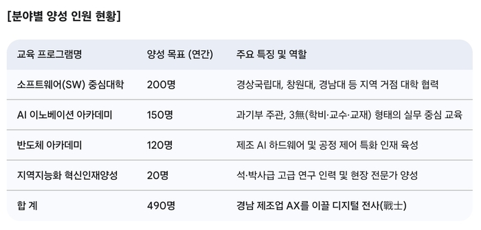 기술의 마지막 퍼즐은 사람이다. 경남은 연간 490명의 AI·반도체·소프트웨어 전문인력을 지역에서 직접 길러낸다.
