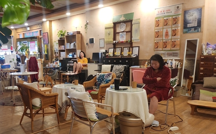훈증요법을 체험한 이용객들이 한방차를 마시며 휴식하고 있다.김건아 대표는 울주군의 자연환경과 한방·온천 자원이 웰니스 산업과 높은 시너지를 낼 수 있다고 보고, 직영점 확대와 프로그램 고도화를 통해 지역 일자리 창출과 체험 관광 활성화에 기여하겠다는 포부도 내비쳤다.