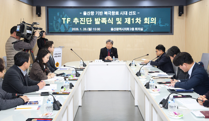 울산시는 26일 오후 시의회 2층 회의실에서 ‘울산항 기반 북극항로 시대 선도 TF 추진단’ 발족식과 함께 제1차 회의를 개최했다. 이날 회의에는 울산시와 울산해양수산청, 울산항만공사, 울산연구원, 울산과학기술원(UNIST), 한국해양수산개발원, 울산항만물류협회 등 관계기관 전문가 10여 명이 참석했다.