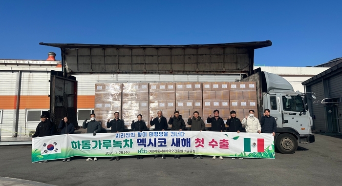 (재)하동차&바이오진흥원(이사장 하승철 하동군수)은 지난 28일 진흥원 가공공장에서 하동말차 중남미 수출 선적식을 열고 본격적인 새해 수출 길에 올랐다고 밝혔다.하동 녹차의 자존심 '하동말차'가 새해 시작과 함께 중남미 시장 공략의 신호탄을 쏘아 올렸다. 하동차&바이오진흥원은 멕시코를 대상으로 대규모 선적을 진행하며 명품 가루녹차의 글로벌 시장 입지를 더욱 공고히 했다.