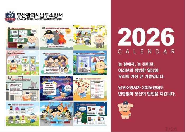 부산 남부소방서(서장 류승훈)는 화재 발생 위험이 높은 전통시장과 노후 공동주택을 중심으로 생활밀착형 화재예방 정보를 담은 ‘365 안전달력’을 배부하고 있다고 30일 밝혔다.부산 남부소방서가 전통시장과 노후 공동주택 등 화재 취약지역을 대상으로 ‘365 안전달력’을 배부하며 생활 속 화재 예방 실천을 강화하고 있다.