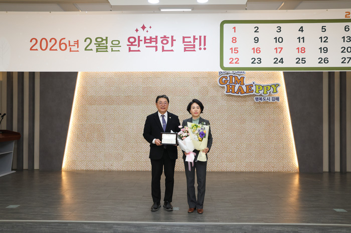 김해시는 2일 오전 시청 대회의실에서 지역 산업과 경제 발전에 기여한 기업인을 발굴·격려하기 위해 수여하는 ‘자랑스러운 김해 CEO상’의 2월 수상자로 ㈜모산에프에스 김진경 대표를 선정하고 상을 수여했다.김해 지역 특산물 ‘장군차’를 김치 제조에 접목한 기능성 식품으로 차별화에 성공한 식품제조기업 ㈜모산에프에스의 김진경 대표가 ‘2월 자랑스러운 김해 CEO상’을 수상했다. 지역 자원을 활용한 기술 혁신과 글로벌 수준의 식품 안전 경영, 지속적인 사회공헌 활동이 높은 평가를 받았다.