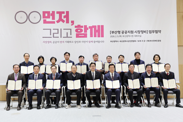 부산시는 5일 시청 1층 대회의실에서 박형준 시장이 참석한 가운데 '공공지원 전통시장 정비 통합기획 추진 업무협약식'을 가졌다.부산시가 노후화와 소비 환경 변화로 침체된 전통시장을 지역경제의 거점 공간으로 재편하기 위해 공공이 직접 기획에 나서는 새로운 시장정비 정책을 본격 추진한다.