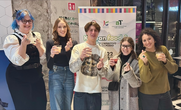 “소주의 색다른 변신”, 전통주 칵테일을 즐기는 밀라노 시민들.여기에 세계적인 바텐더 디에고 페라리가 소주와 복분자주를 베이스로 개발한 ‘코리안 마티니’를 비롯해, 이탈리아의 식전 문화인 아페리티보(Aperitivo)에 착안한 K-푸드 체험 공간도 마련된다. 이강주, 솔송주 등 한국 전통주를 현장에서 소개하며, K-푸드를 ‘식문화 경험’으로 확장한다는 전략이다.