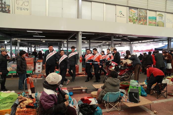 김두겸 울산시장은 설 명절을 앞둔 13일 울주군 남창옹기종기시장에서 고려아연 김승현 부사장을 비롯한 직원들과 함께 '기업과 함께 하는 우리동네 전통시장 장보고(go) 행사'에 참여한 뒤 물가안정 현장점검 및 상인들을 격려했다.특히 올해 행사는 단순 장보기 행사에 그치지 않고, 설 명절을 앞두고 시민들이 물가 부담 없이 명절을 준비할 수 있도록 물가안정 현장점검을 병행한다. 아울러 화재 위험 등 안전사고 예방을 위한 안전점검도 함께 실시해 시장 이용 환경 개선에도 힘을 보탠다.
