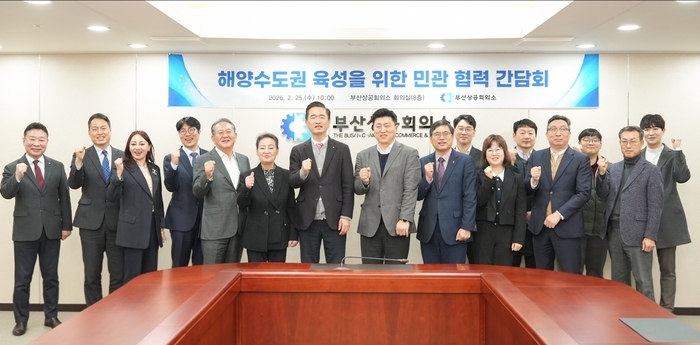 부산상의는 25일 오전 상의회관에서 해양수산부, 부산광역시 관계자 및 지역 해양기업인들과 ‘해양수도권 육성을 위한 민관 협력 간담회’를 개최했다.부산상공회의소가 해양수도권 육성을 위한 민관 협력 간담회를 열고 정부·지자체·지역 해양기업과 핵심 과제를 논의했다. 참석자들은 AI 해양데이터 센터 설립 등 초광역 프로젝트 구체화와 함께 인프라 확충, 금융·세제 지원이 병행돼야 한다고 강조했다.