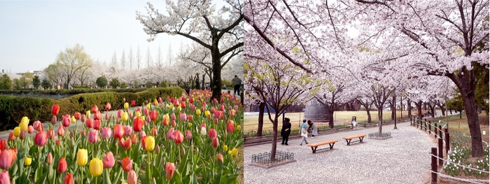 연지공원(벚꽃, 튤립)가장 먼저 봄 소식을 전하는 꽃은 매화다. 매화는 김해의 시화로, 도심 곳곳에서 쉽게 만날 수 있다. 연지공원을 비롯해 국립김해박물관, 대성동고분군 일대 등에서 매화가 피어나며 봄의 시작을 알린다.