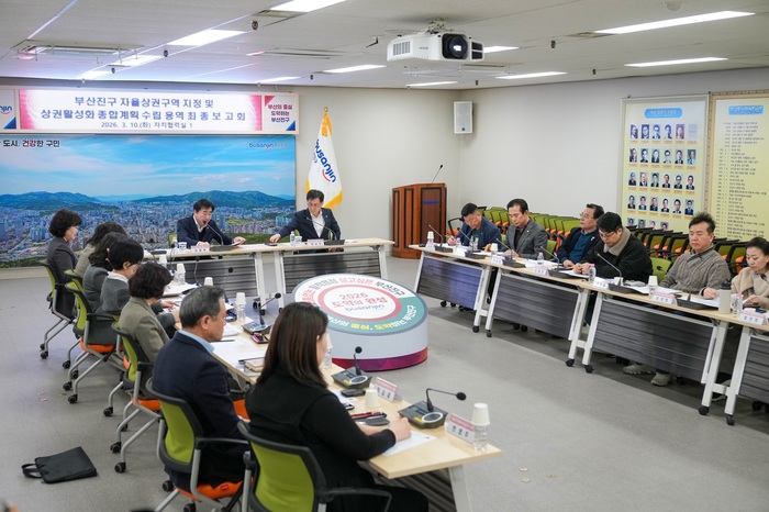 부산진구(구청장 김영욱)는 지난 10일 구청 자치협력실에서 구청장과 관계 공무원, 구의원, 서면1번가자율상권조합원 등이 참석한 가운데 서면1번가자율상권구역 상권활성화 종합계획 수립 용역 최종보고회를 개최했다고 밝혔다.