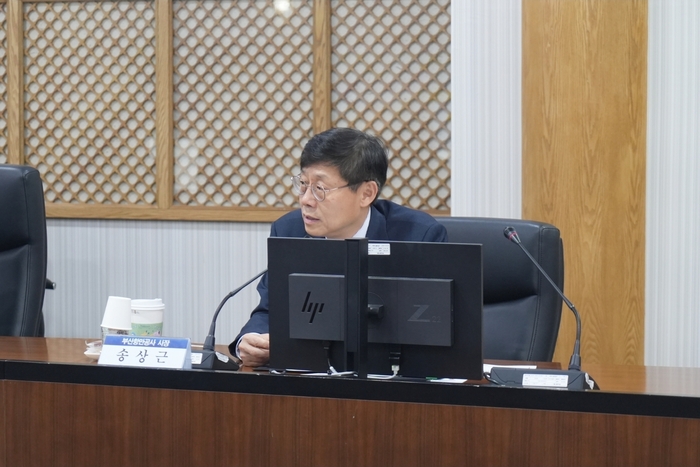 송상근 부산항만공사 사장이 간담회에서 발언하고 있다.특히 호르무즈 해협 등 주요 중동 항로의 상황과 물동량 변화가 핵심 점검 대상이었다. 부산항만공사는 항로별 영향과 터미널 운영 상황을 면밀히 분석하고, 에너지 가격 변동이 항만 운영에 미치는 파급 효과까지 종합적으로 진단했다.