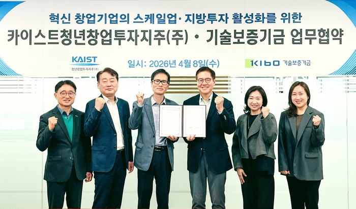 기술보증기금(기보)은 8일 대전 충청지역본부에서 카이스트청년창업투자지주(KVI)와 ‘혁신 창업기업 스케일업 및 지방투자 활성화’를 위한 업무협약을 체결했다고 밝혔다.기술금융과 민간투자가 결합된 새로운 창업 지원 모델이 본격 가동된다. 기술보증기금과 카이스트청년창업투자지주가 협력해 지역 기반 혁신 창업기업의 발굴과 성장을 체계적으로 지원하기로 하면서, 지방 창업 생태계 활성화에 대한 기대감이 커지고 있다.