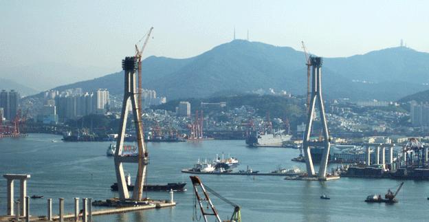 주탑 높이는 190m. 주탑과 상판을 연결하는 대형 케이블도 160개에 달한다.