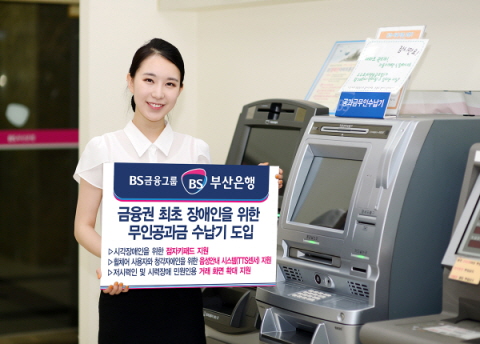 부산은행(은행장 성세환)은 정보화 소외계층인 장애인 및 노약자 등 사회적 약자를 위해 금융권 최초로 장애인을 위한 맞춤형 납부 기능 지원 을 갖춘 무인공과금 수납기를 도입한다.