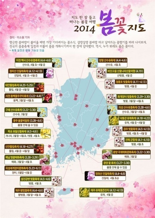 지난 13일 기상청은 올해 벚꽃은 오는 27일 서귀포를 시작으로 남부지방은 4월 1일~4월 12일, 중부지방은 4월 7일~4월 11일, 경기북부와 강원북부 및 산간지방은 4월 10일 이후에 개화할 것으로 예상된다고 밝혔다.