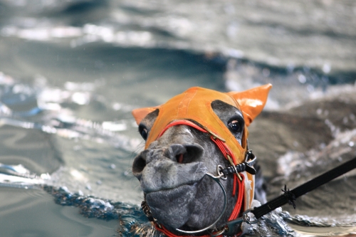 부경경마에는 말 전용 수영장이 있는데, 이곳에서 경주마들은 수영을 즐긴다. 하지만 사람들처럼 그저 물놀이를 즐기는 차원만은 아니다. 사람들이 더위를 피해 찾는 물놀이장소에는 웃음소리가 가득하지만 경주마 전용 수영장에선 연신 뿜어대는 경주마들의 거친 숨소리가 그 자리를 대신한다.