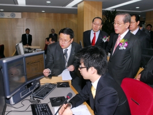 박찬법 부회장(사진 우측에서 두번째)이 첨단 종합 종합통제센터에는 운항관리사를 포함해 운항, 정비, 캐빈, 영업 등 각 분야별 전문가들이 상주하며 전 세계에 운항중인 항공기의 실시간 위치 추적은 물론 위성 통신과 웹기반 통신시스템을 통한 운항승무원과의 실시간 교신으로 비정상 상황 발생시 지상에서의 즉각적인 통제와 지원을 할 수 있도록 했다.
