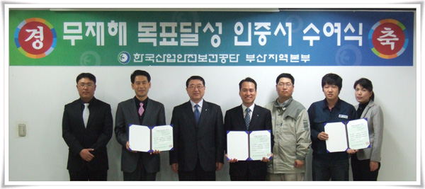 한국산업안전보건공단 부산지역본부(본부장 손두익)는 3월 19일 오전 지역본부 회의실에서 (주)로커스 등 4개 무재해 달성 사업장을 대상으로 무재해 목표달성 인증서 및 유공자 표창장을 수여했다.