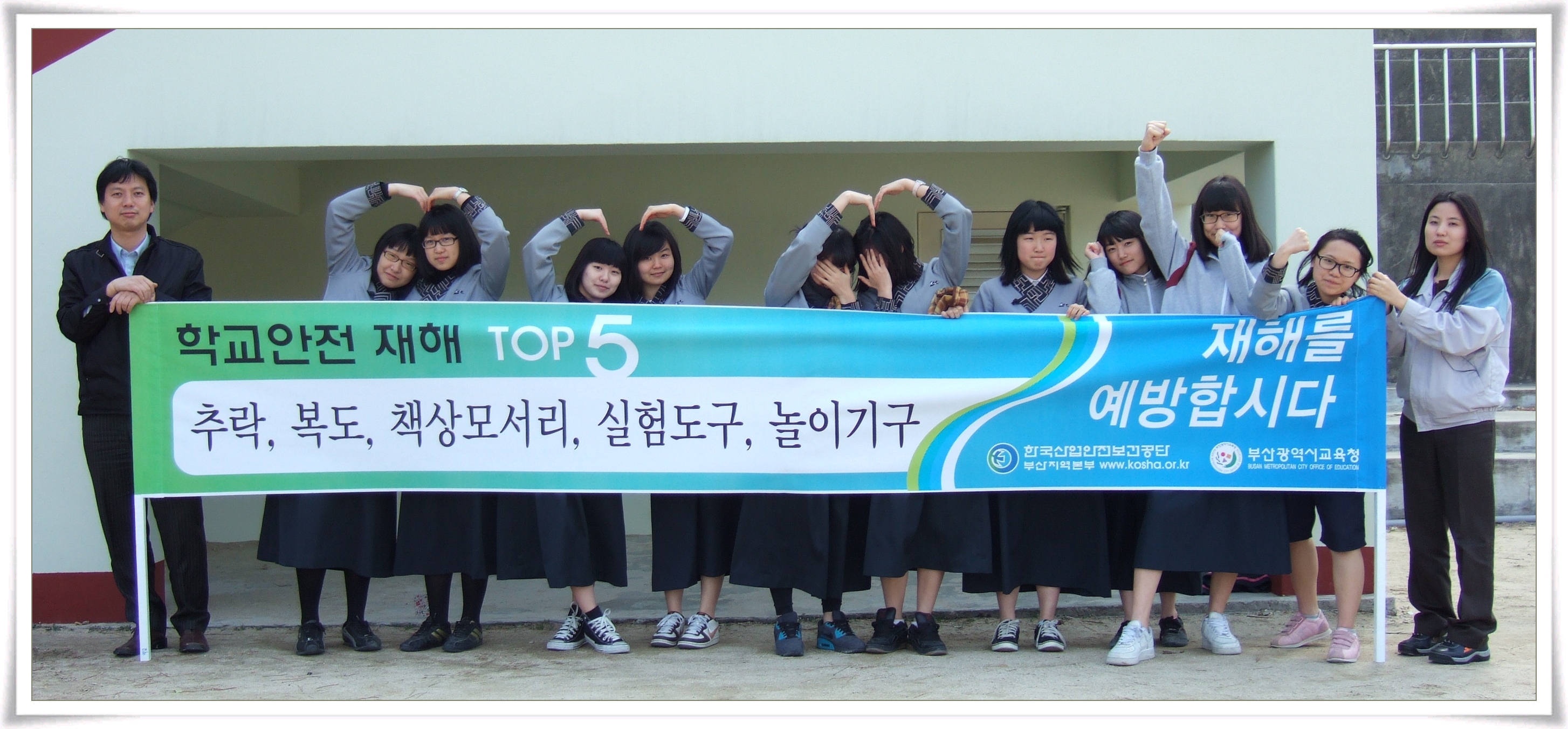 이번 행사는 학교에서 가장 빈번하게 발생하는 추락재해를 비롯, 복도, 책상모서리, 실험도구, 놀이기구 등 다섯 가지 다발재해를 중심으로 학교안전사고를 사전 예방하기 위하여 실시됐으며 학생들과 교직원들을 대상으로 안전의식을 높이는데 초점을 두고 실시됐다.