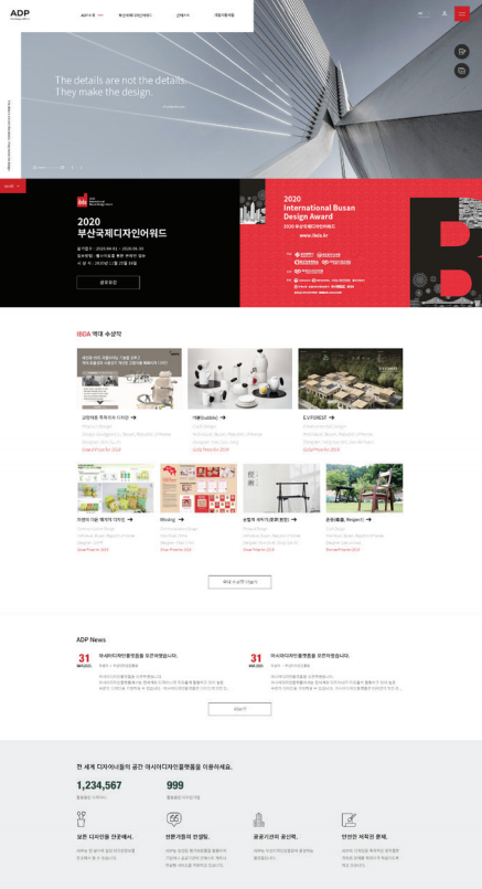 아시아디자인플랫폼(ADP)은 부산 지역 디자인 산업이 네트워크 기반의 4차 산업혁명시대에 새로운 가치를 창출하고 글로벌 시장으로 진출하는 것을 지원하기 위해 2년간 구축하고 있다. 올해 3월부터 10월까지 약 8개월에 걸쳐 반응형 웹사이트 구축을 추진하고, 11월 일부 서비스를 우선 공개했다.
