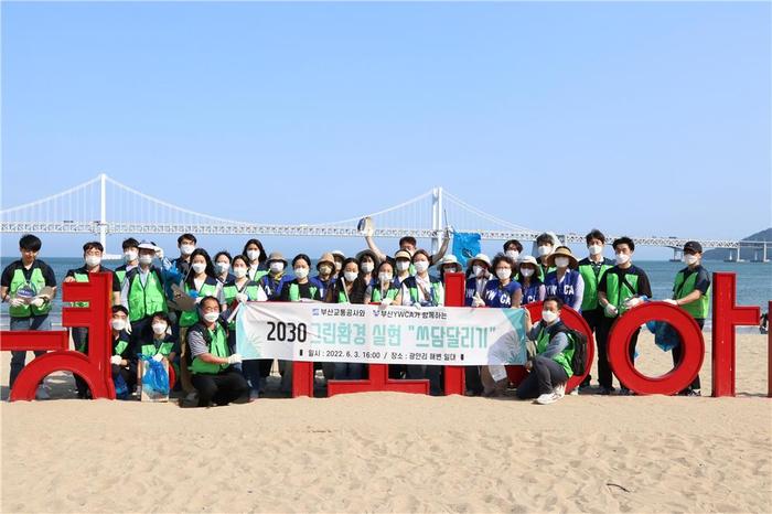 이날 공사는 임직원 20여명 및 부산YWCA직원 10명과 함께 도시철도 광안역부터 광안리 해수욕장을 거쳐 민락 수변공원까지 걸으며 플라스틱과 생활 쓰레기 등을 수거하는 ‘쓰담 달리기’를 실시했다.