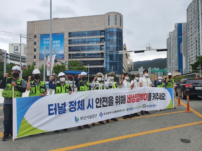 부산시설공단은 8일 오전10시부터 오후2시까지 황령터널 전포방향 입구와 윤산터널 일원에서 유관기관 합동으로 안전운전 캠페인을 펼쳤다고 밝혔다.