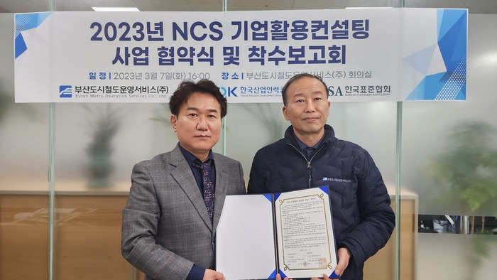 부산도시철도운영서비스(주)는 3월 7일 한국표준협회[대표이사 강명수]와 NCS기업활용 컨설팅 관련 업무협약을 체결하였다.