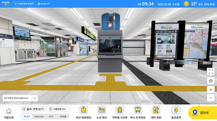 특히 키오스크 위치에서 승강장, 고객센터 등 역내 시설뿐만 아니라 인근 버스정류장 등 역 주변시설까지 계단과 같은 장애물이 없는 최적 경로를 안내해 교통약자가 헤매지 않고 안전하게 이동할 수 있도록 돕는다.