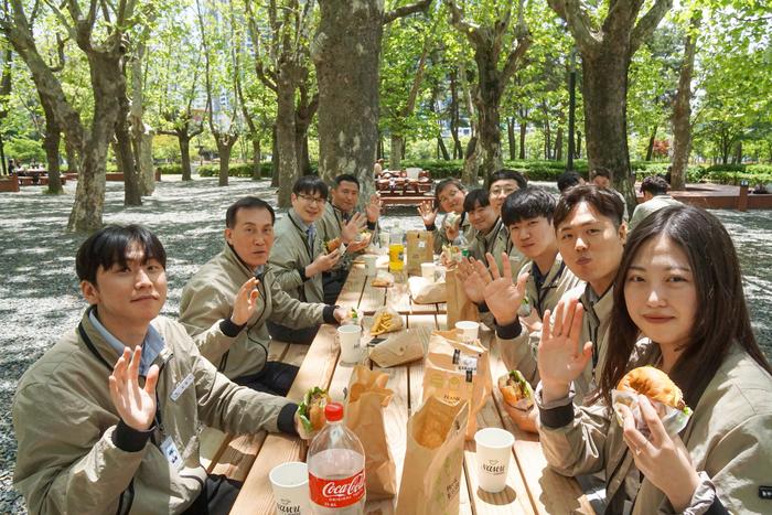 부산시설공단 박인호 이사장 직무대행이 24일(수) 오전 일과를 마치고 부산시민공원 기억의 숲 일원에서 공단 시민안전실 직원들과 ‘브라운 백 미팅’에 참석해 소통의 시간을 가졌다. 이어, 인근에 위치한 기억의 기둥 일원으로 자리를 옮겨 ‘청렴 ON, 부패 OFF, 신뢰받는 BISCO’ 청렴캠페인도 전개했다.