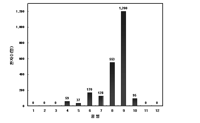 여름철 해수 온도 상승으로 바닷물에 있는 장염비브리오균의 증식으로 인한 장염비브리오 식중독은 6월부터 10월에 주로 발생하고, 특히 8월과 9월에 집중적으로 식중독 환자가 발생한다.