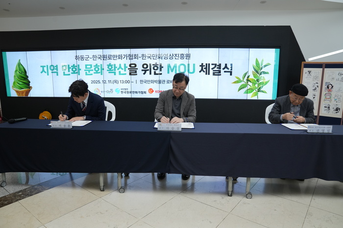 하동군은 지난 11일 한국만화영상진흥원, 한국원로만화가협회와 국내 만화 발전 및 지역 만화 문화 확산을 위한 업무협약(MOU)을 체결했다고 밝혔다.