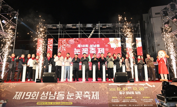 제19회 성남동 눈꽃축제 개막식 24일 구 중부소방서부지에서 김영길 중구청장과 김두겸 울산시장, 박경흠 중구의장, 박성민 국회의원, 이성룡 시의장, 김철 울산공업축제 추진위원장, 명일식 중구체육회장, 박상수 중구상인연합회 회장, 시 구의원, 현장을 찾은 시민들이 참석한 가운데 열렸다.