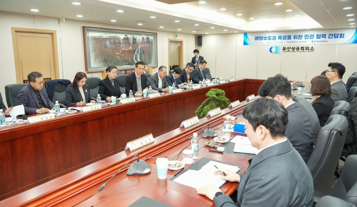 부산상의는 25일 오전 상의회관에서 해양수산부, 부산광역시 관계자 및 지역 해양기업인들과 ‘해양수도권 육성을 위한 민관 협력 간담회’를 개최했다.