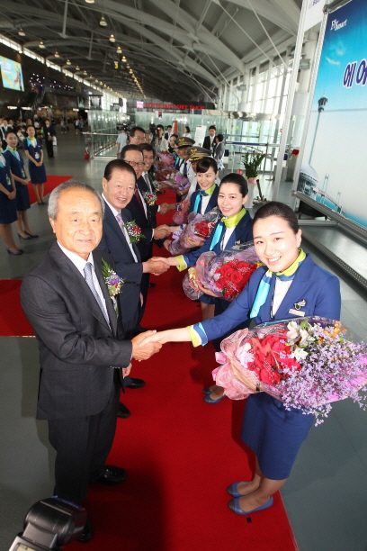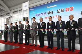 이날 취항 기념 행사는 오전 9시 55분에 김해공항 국제선 2번 게이트 앞에서 열렸다. 고윤환 부산시 행정부시장, 현기환 국회의원, 신정택 부산상공회의소 회장, 윤영두 아시아나항공 사장, 조춘순 부산지방항공청장 등 내빈들이 참석한 가운데 펼쳐졌으며, BX112편 부산발 도쿄행(10:55 출발 12:55 도착) 첫 편 운항을 시작으로 본격적인 운항에 들어갔다.