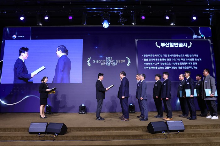 부산항만공사는 25일 서울 용산에서 열린 ‘2025년도 대·중소기업 안전보건 상생협력사업 우수기업 시상식’에 참석해 우수 모기업으로 수상했다.부산항만공사(BPA)가 고용노동부 주관 ‘대·중소기업 안전보건 상생협력사업’에서 우수기업으로 선정됐다. 협력사와의 안전관리 역량 공유를 통해 산업재해 예방 체계를 강화한 성과를 공식적으로 인정받았다.