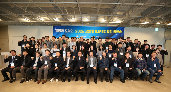 부산진해경제자유구역청(청장 박성호, 이하 경자청)은 27일 ‘2026 상반기 BJFEZ 직원 워크숍’을 개최했다. 이번 워크숍은 조직의 중장기 방향성을 재점검하고 미래 전략을 공유하기 위한 자리로, 전문가 초청 특강과 소통·공감 프로그램, 자유 토론 등으로 구성됐다.