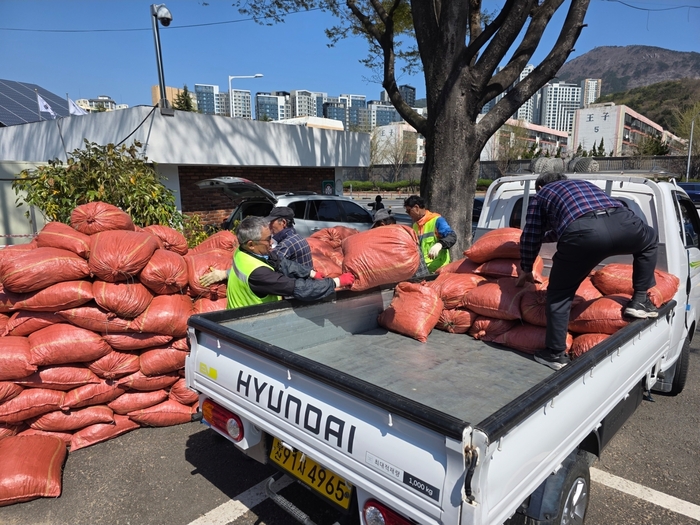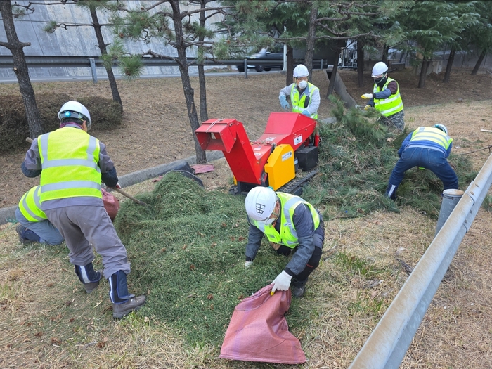 부산시설공단은 도시고속도로 번영로 일대 녹지대 유지관리 과정에서 전정된 소나무를 파쇄해 만든 ‘소나무 우드칩’을 무료로 나누는 자원순환 사업을 추진한다고 밝혔다.