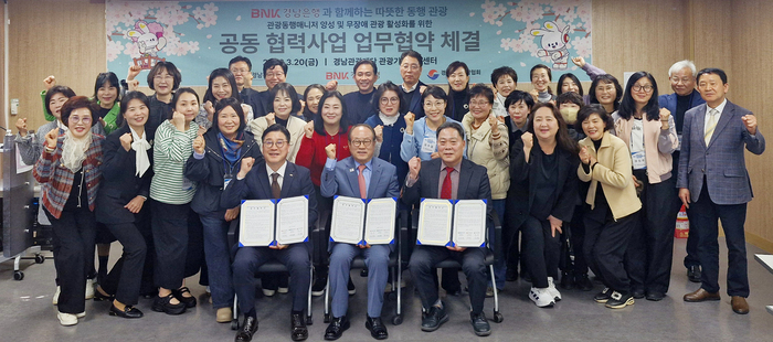 BNK경남은행은 24일 경남관광기업지원센터에서 경남관광재단, 경남관광협회와 ‘경남형 관광동행매니저 양성 및 무장애 관광 활성화’를 위한 3자 간 업무협약을 체결했다고 밝혔다.