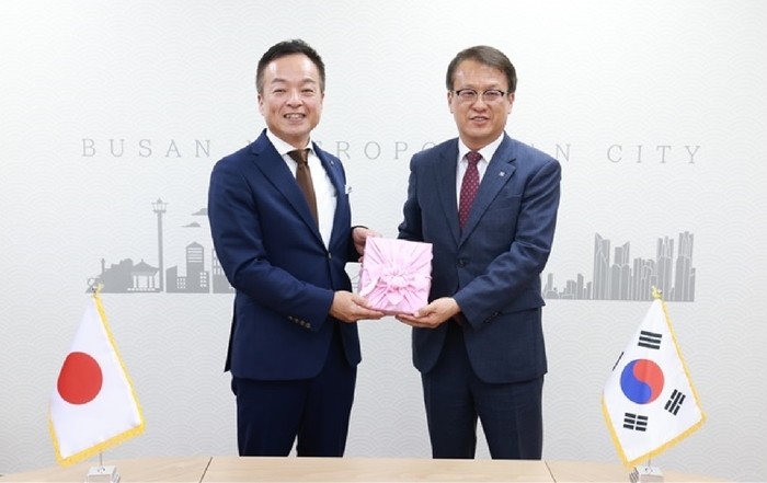 우측부터  김경덕 행정부시장, 마에다 신타로 시모노세키 시장.양측은 이날 관광·문화 교류 확대를 비롯해 다양한 협력 사업을 논의했다. 특히 부산시는 오는 9월 열리는 ‘부산글로벌위크’ 참여를 제안하며, 항만·해양을 중심으로 한 정책 협력과 도시 간 네트워크 강화를 주문했다. 글로벌위크는 자매·우호도시 대표단을 초청해 포럼, 정책 대담, 현장 시찰 등을 진행하는 부산의 대표 국제행사다.