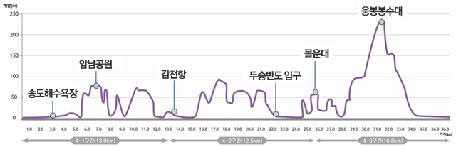 이용자들을 위해 난이도를 초·중·고급으로 구분해 코스별 등고선을 표시, 선택적 탐방을 유도했다. 다양한 교통수단을 활용한 접근이 가능하도록 한 것도 눈길을 끈다.