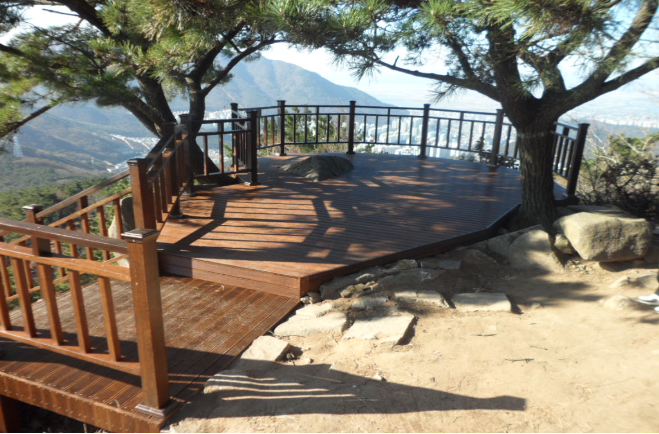 부산시 푸른도시가꾸기사업소(소장 정판수)는 금정산을 찾는 시민들이 안전하고 쾌적하게 산을 즐길 수 있도록 급경사로 위험한 등산로(만덕동 산1-8번지 일원) 구간에 데크 계단 및 전망대를 설치했다.