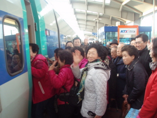 이들 어르신들은 울산역에 KTX 열차가 정차하자 하나같이 들뜬 마음으로 만면에 웃음을 지으며 KTX에 차례로 올랐다.