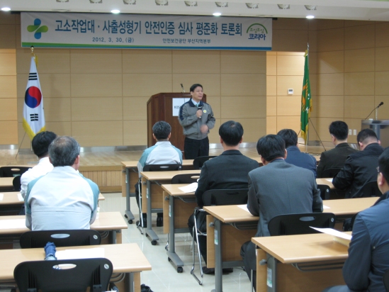 한국산업안전보건공단 부산지역본부(본부장 심재동)는 지난 30 전국 안전공단 안전인증 심사원을 대상으로 고소작업대 및 사출성형기에 대한 안전인증 심사 토론회를 실시했다.