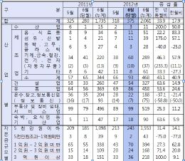 또한 업종별로 분석하면 부동산 및 장비 임대업(6.4%)이 가장 많았고, 이어 제조업(24.8%), 유통업 86개체(22.9%), 건설업 54개체(14.4%), 운수, 정보통신업 22개체(5.9%) 등의 순으로 나타났고, 전반적으로 운수, 정보통신업을 제외한 모든 업종에서 증가한 추세다.