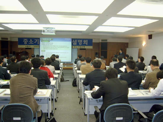 이날 설명회는 중소․벤처기업의 원활한 자금조달과 벤처.이노비즈기업 인증, 세무.산업재산권 등 중소기업의 경영애로 해소를 지원하기 위해 기술금융지원제도를 기업은행이 혁신형중소기업의 융자지원제도에 대해 각각 설명하고 새빛회계법인은 중소기업의 절세와 세무관련 애로 해결방안을, 한영국제특허법인에서는 산업재산권 등록과 활용방법 등을 소개했다.