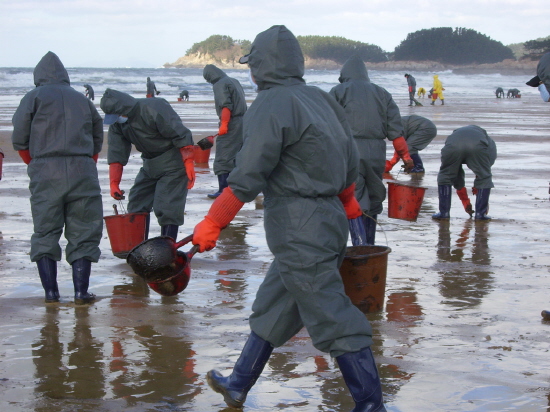 기보는 13일 본부와 대전․충청지역 영업점 및 보증업체 임직원 26명으로 자원봉사단을 구성, 자체적으로 마련한 방제복, 장화, 장갑, 마스크, 바가지 등 방제장비를 갖추고 사고지역인 만리포 해수욕장 일대에서 바닷가로 밀려온 기름을 걷어내는 피해복구 활동을 펼쳤다.