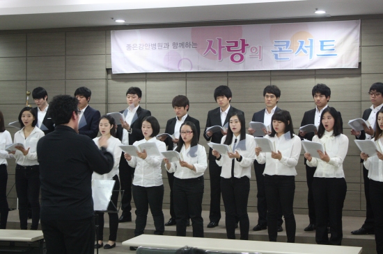 좋은강안병원(병원장 구정회)은 지난 11월 26일 오후 6시 30분부터 좋은강안병원 본관 지하 대강당에서 하늘웃음교회(선교회/봉사단)와 함께 환자 및 내원객들을 대상으로 자선음악회를 개최하였다.