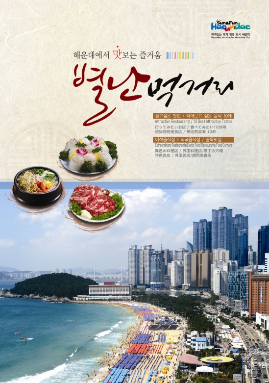 해운대구(구청장 배덕광)는 세계적인 관광도시 해운대를 방문하는 국내외 관광객들에게 해운대만의 특별한 먹거리를 홍보하기 위해 '해운대에서 맛보는 즐거움-별난 먹거리' 책자를 2천 권 발간했다.